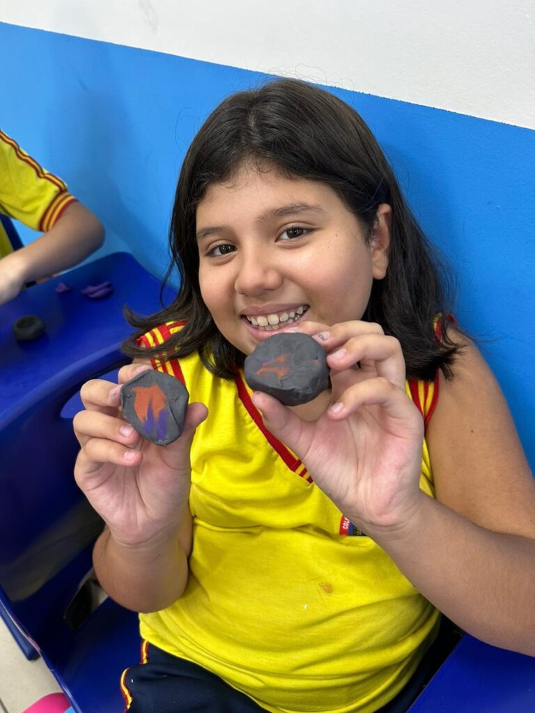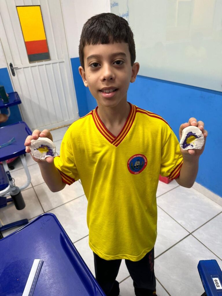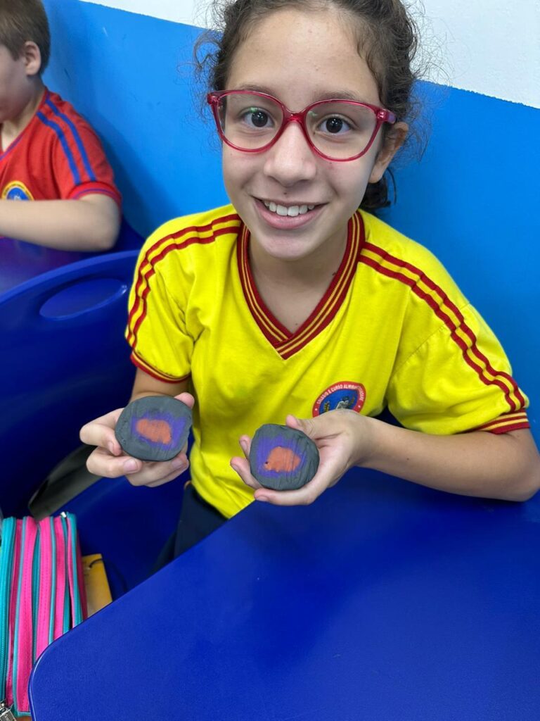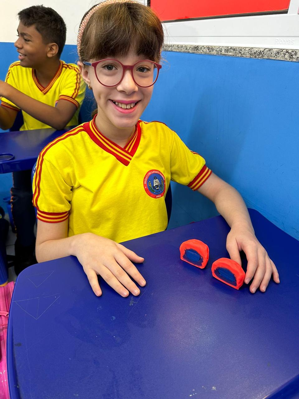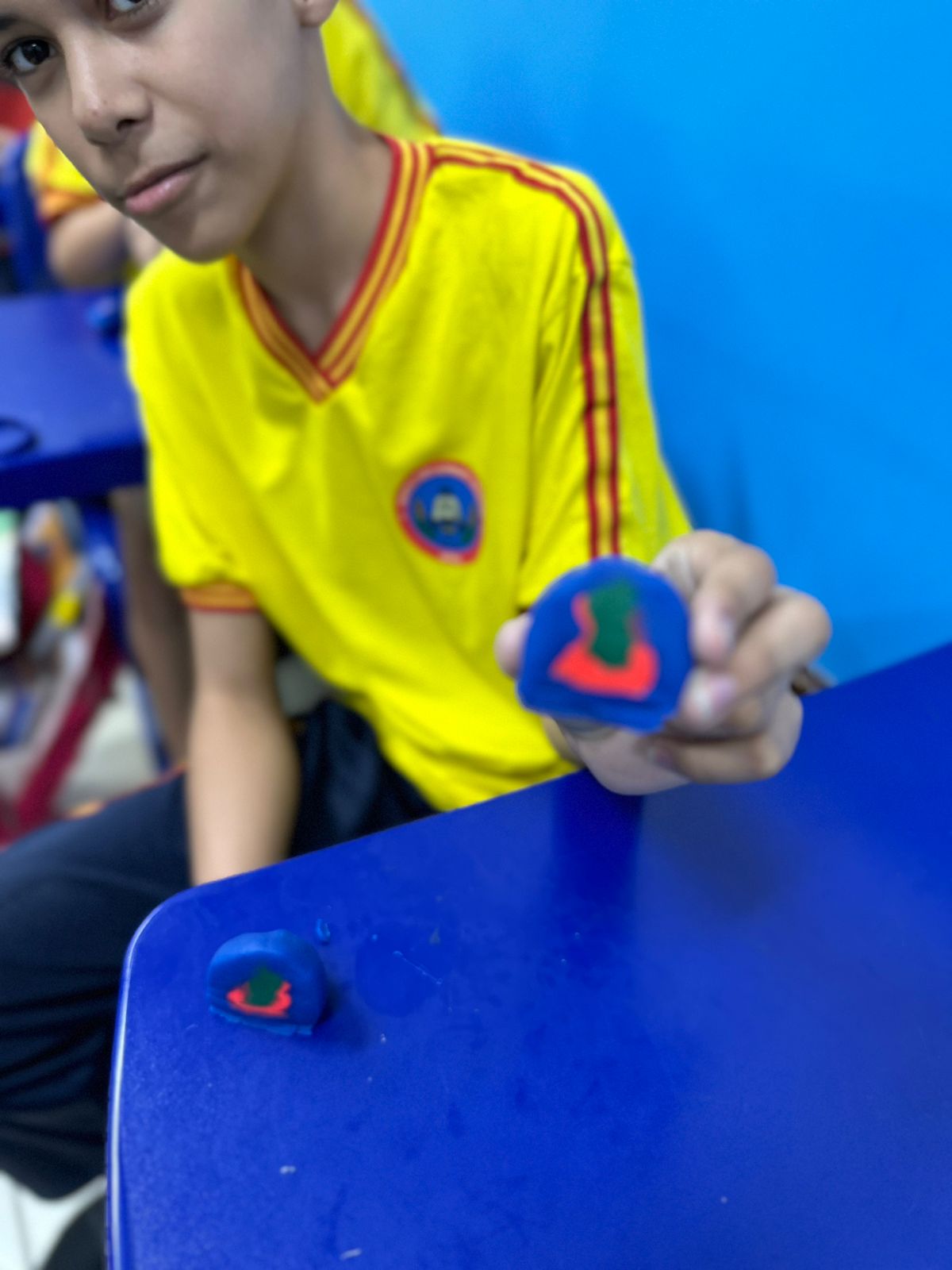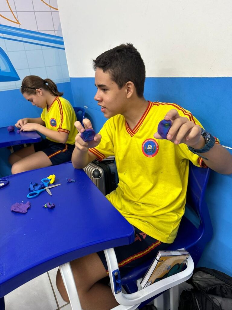 Turminha dos 6º anos montando a estrutura interna do planeta Terra com massinha na aula de Ciências com a professora Yasminne!