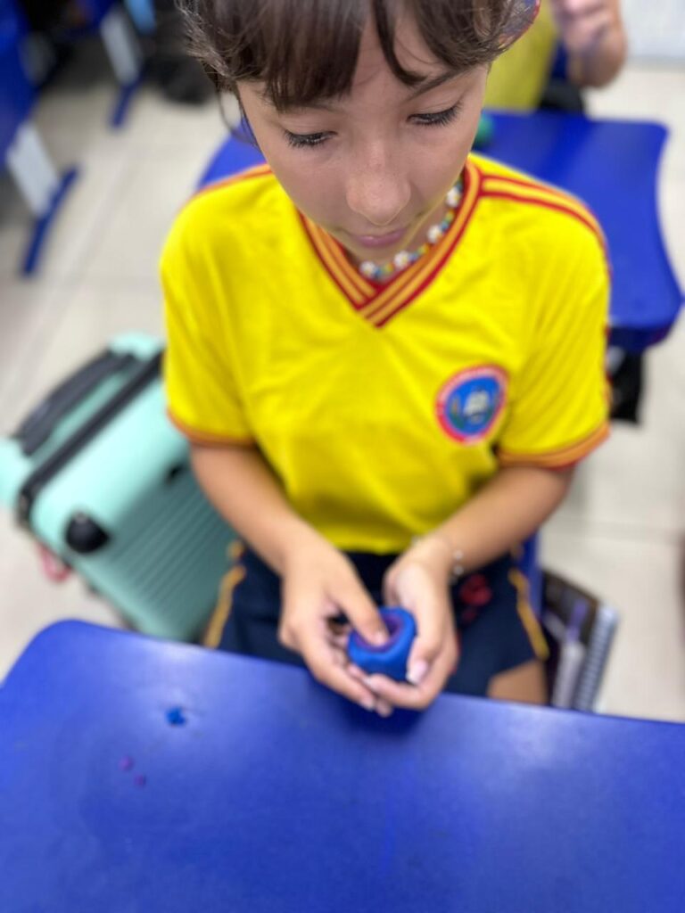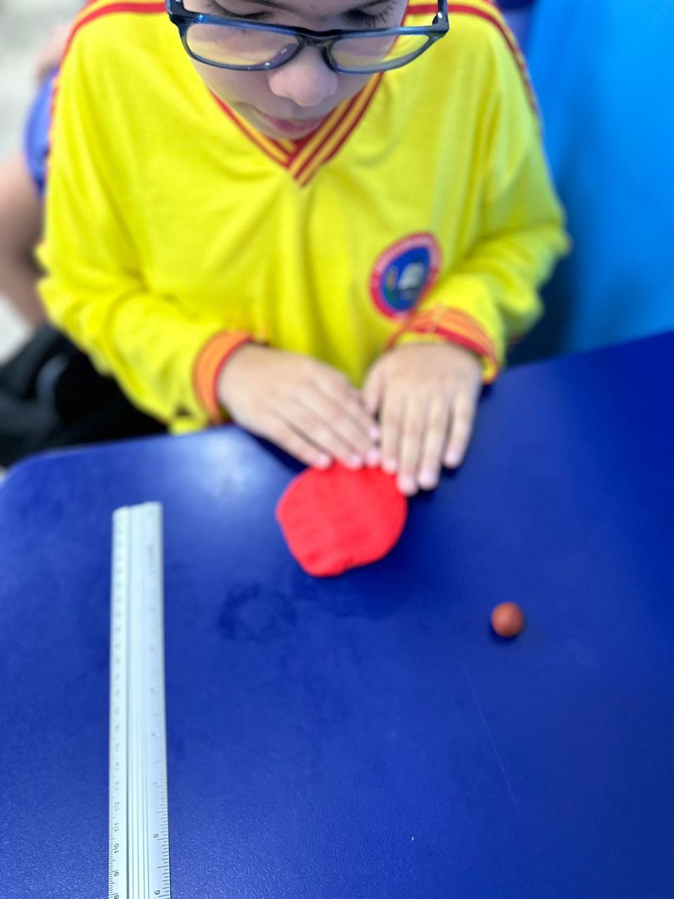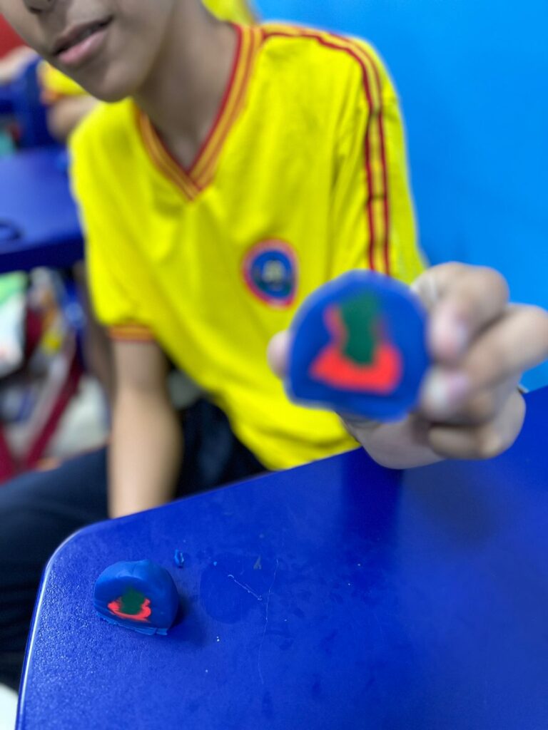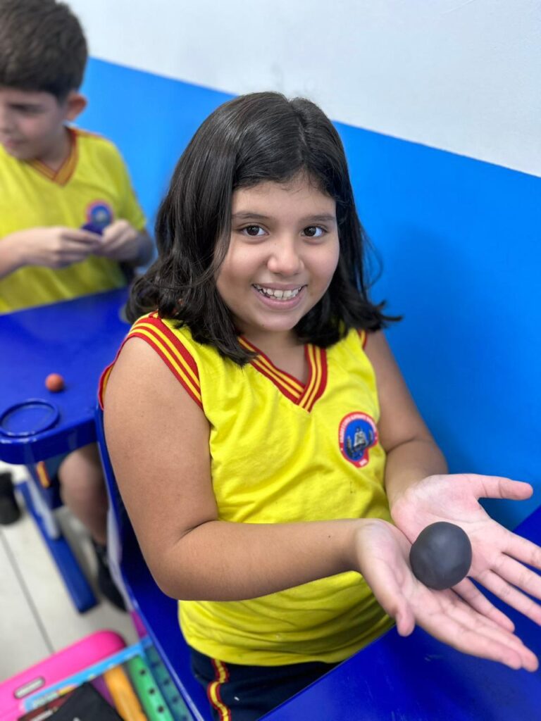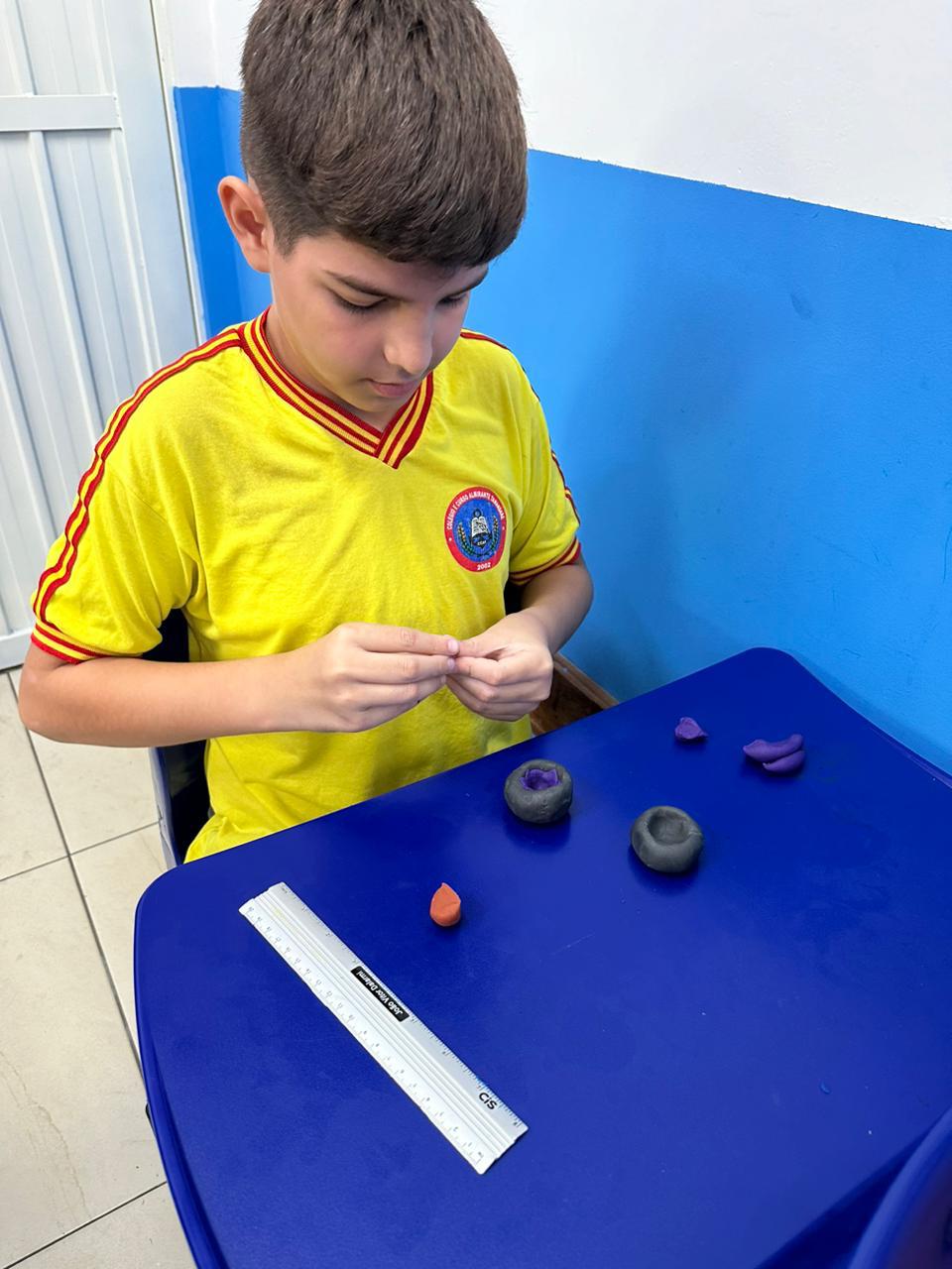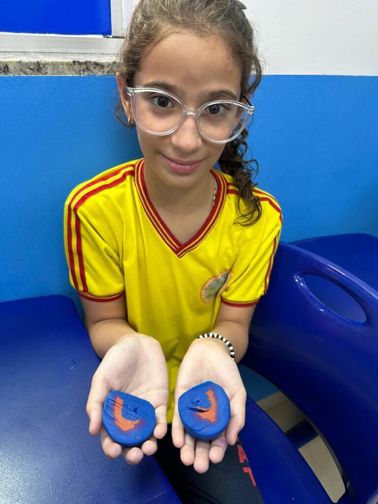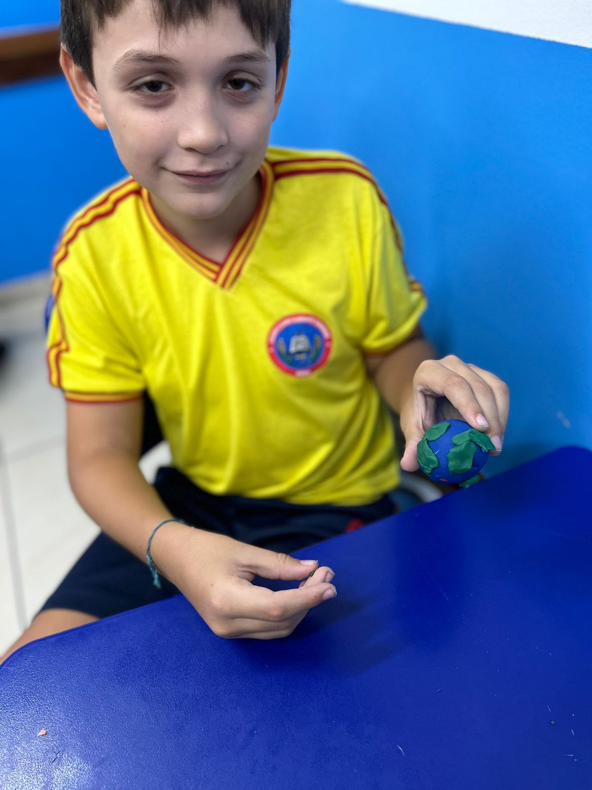 Turminha dos 6º anos montando a estrutura interna do planeta Terra com massinha na aula de Ciências com a professora Yasminne!