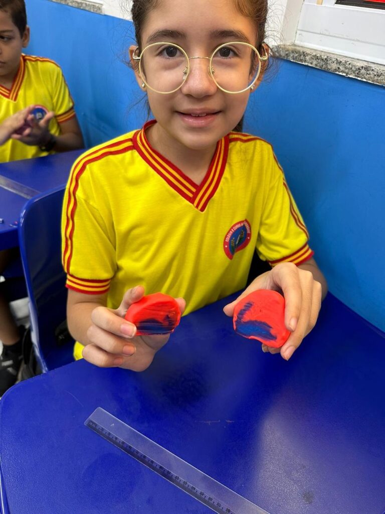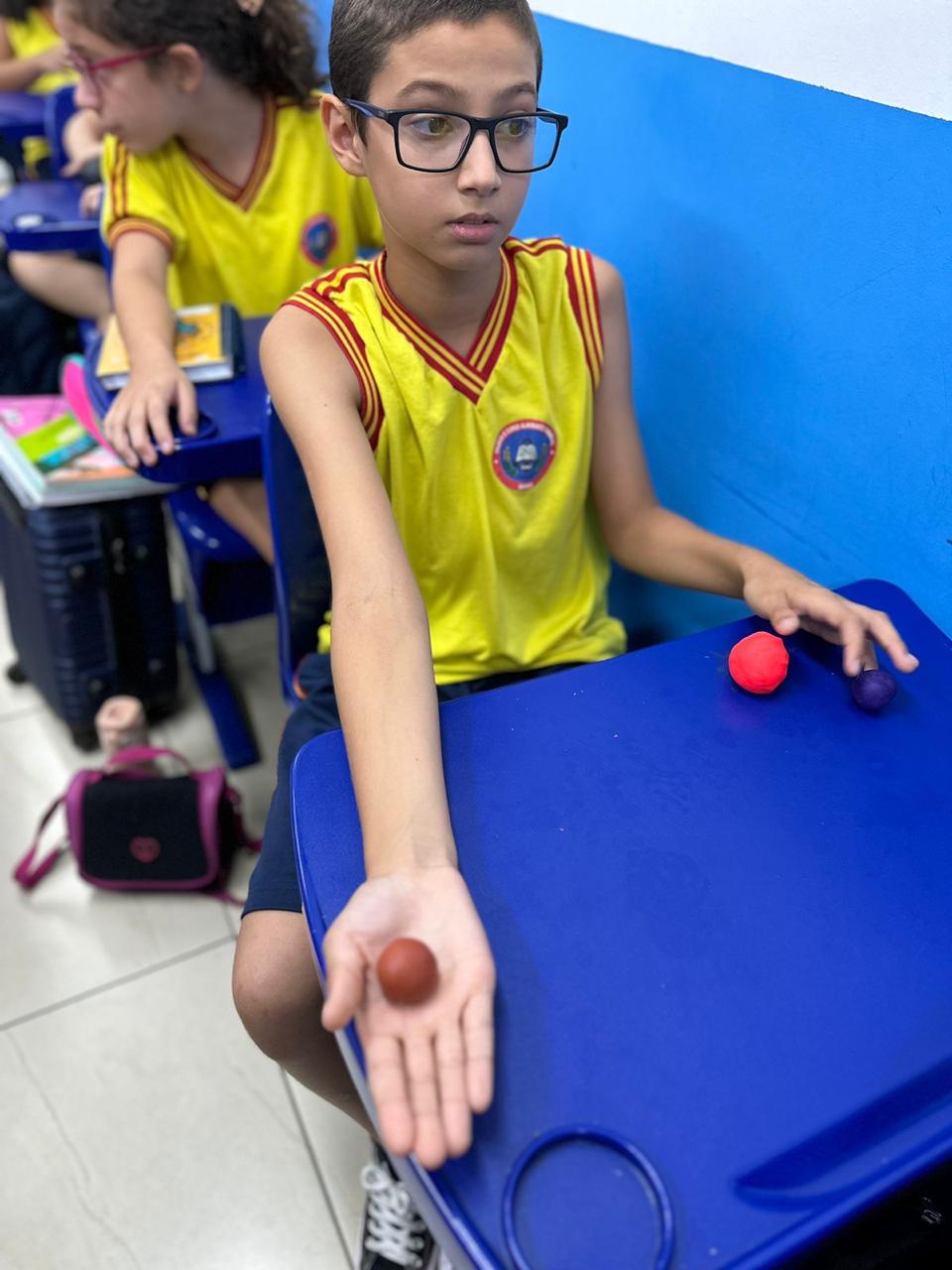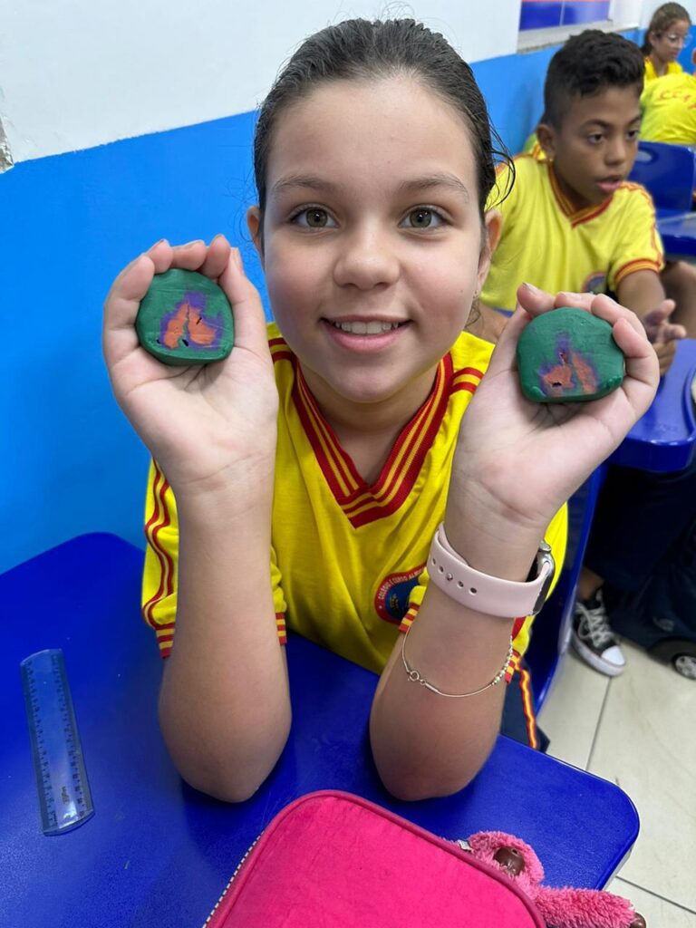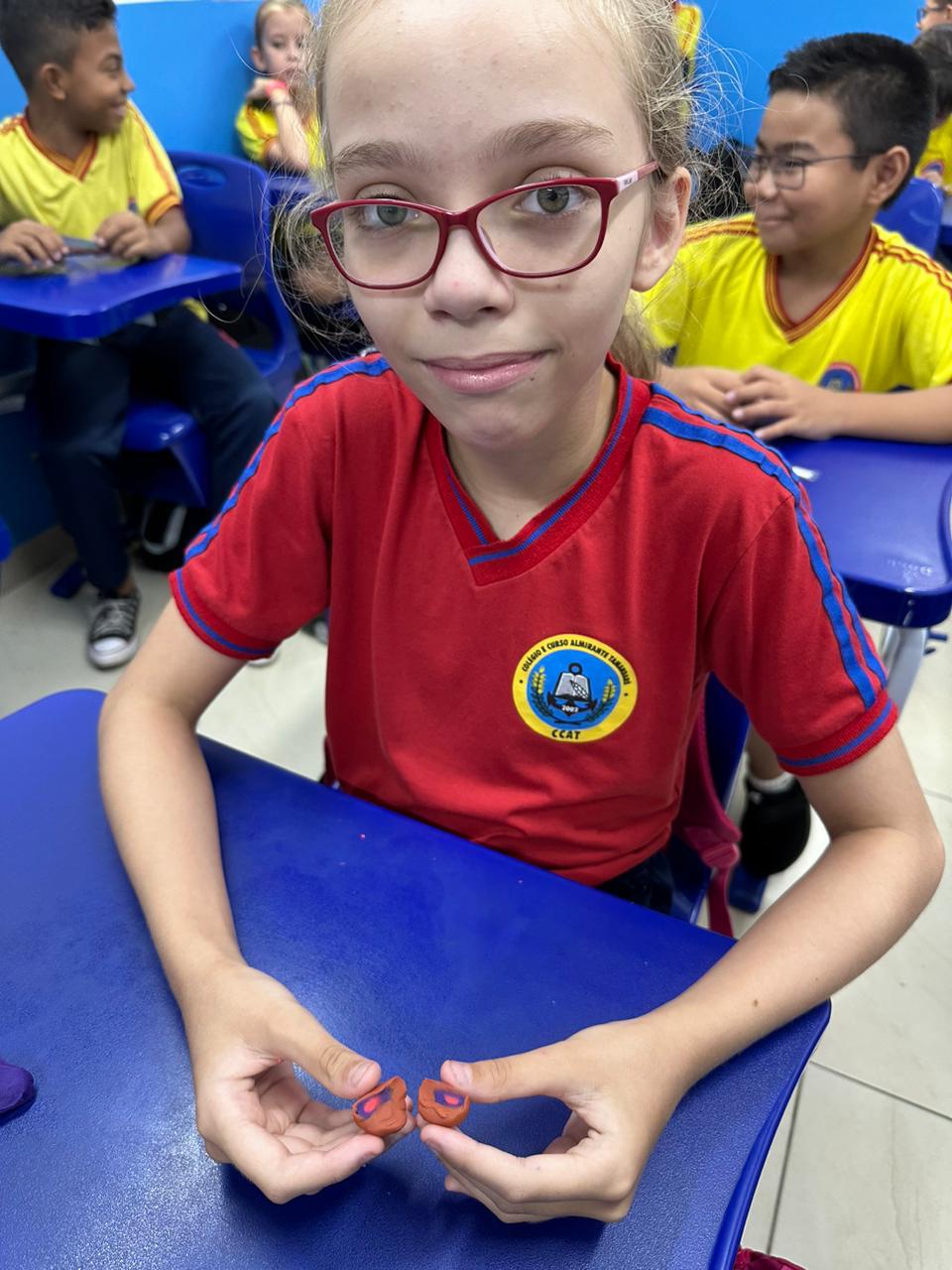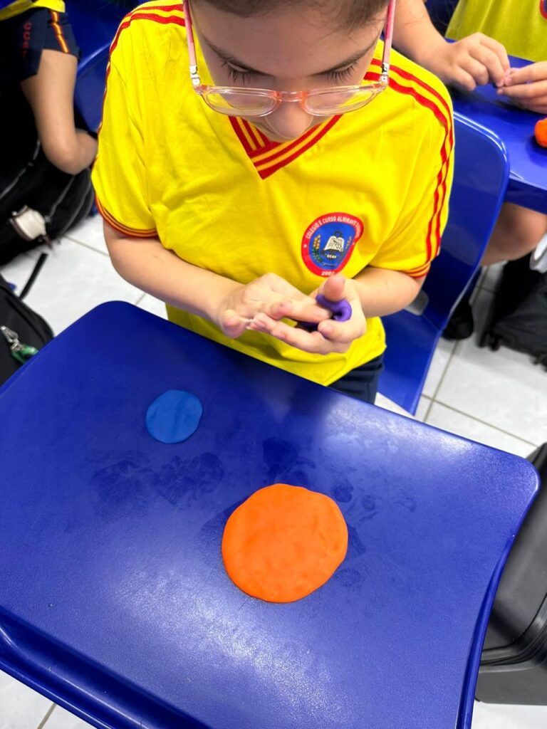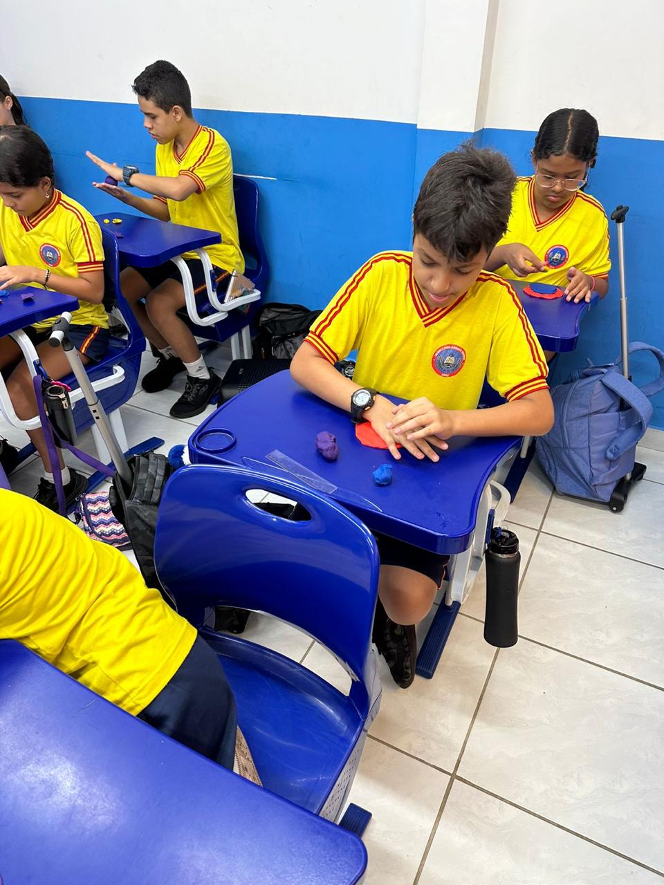 Turminha dos 6º anos montando a estrutura interna do planeta Terra com massinha na aula de Ciências com a professora Yasminne!