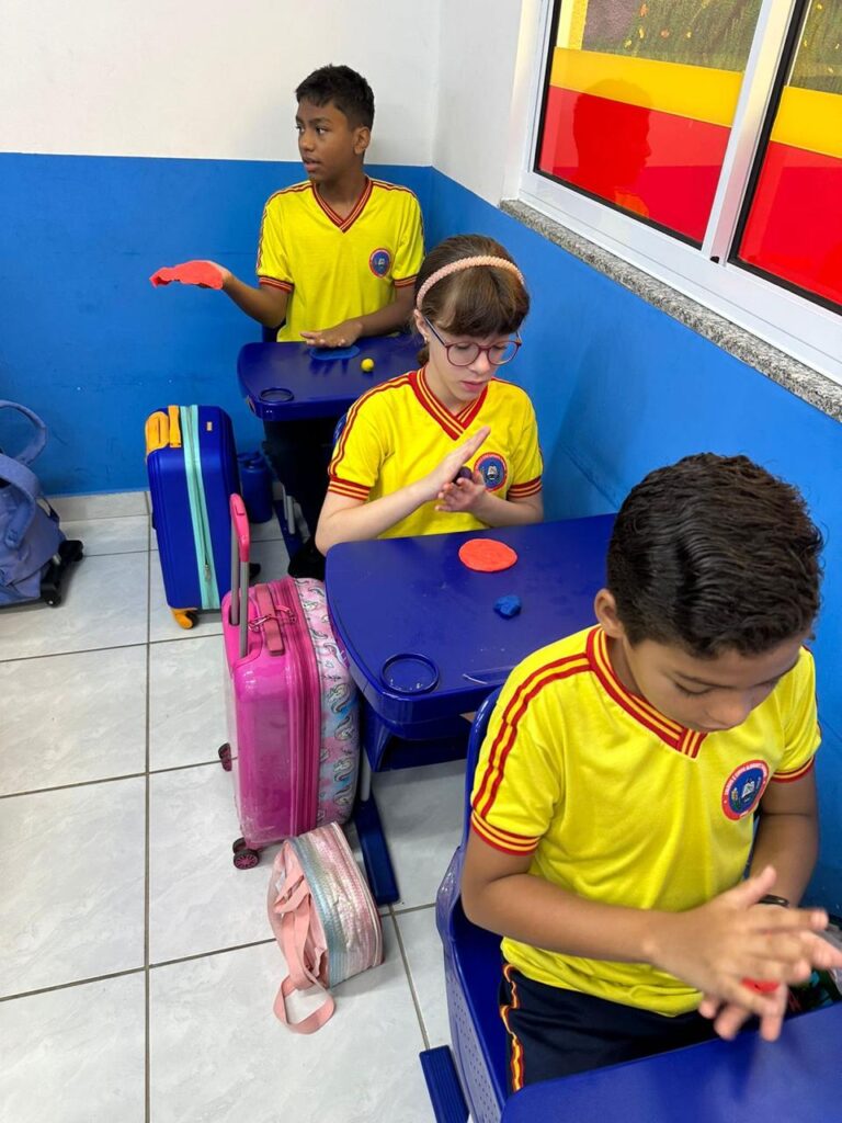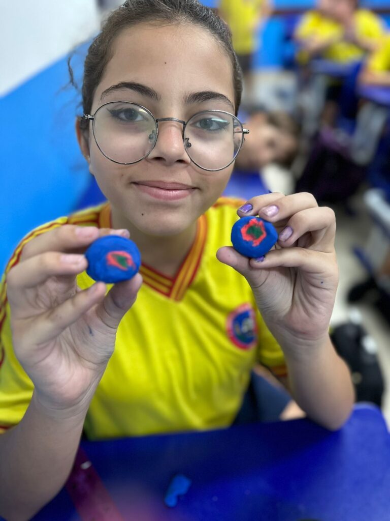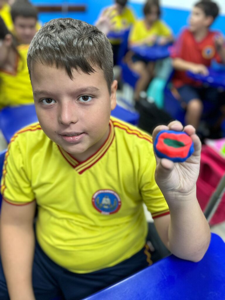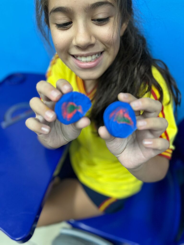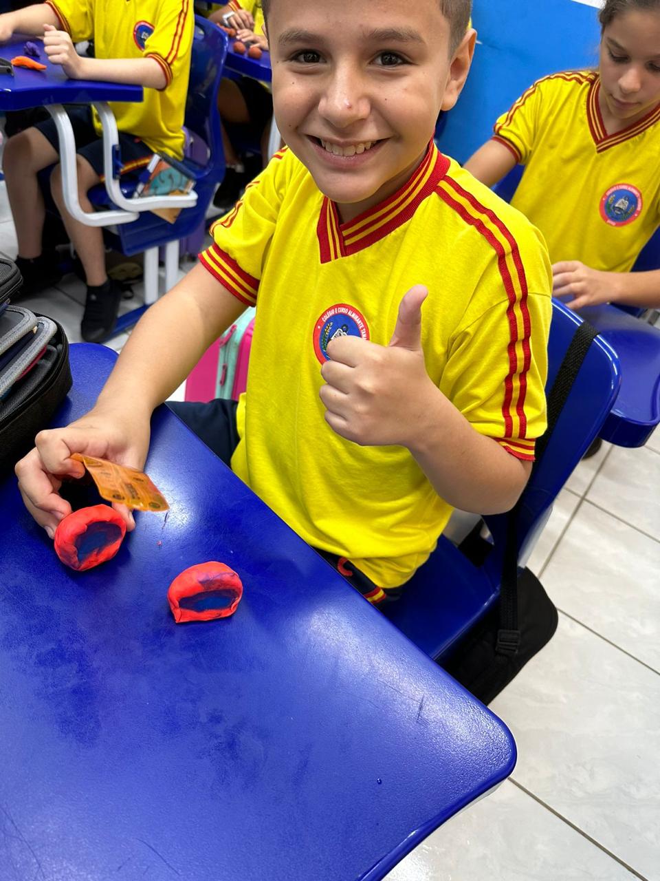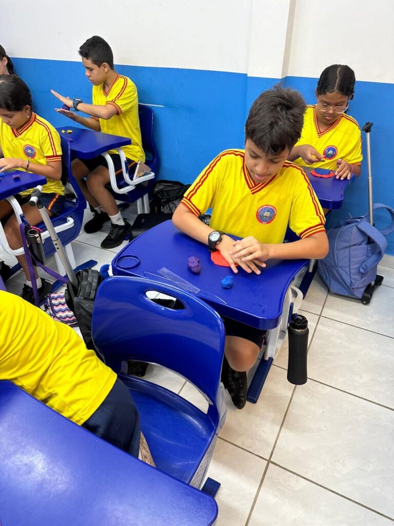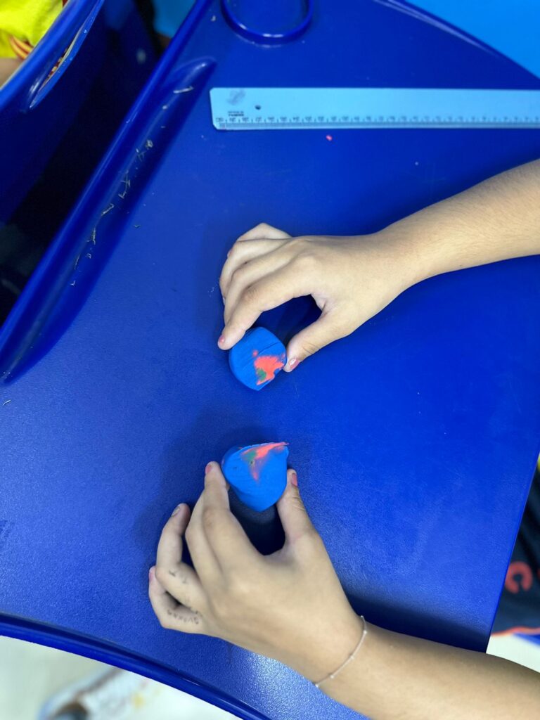 Turminha dos 6º anos montando a estrutura interna do planeta Terra com massinha na aula de Ciências com a professora Yasminne!