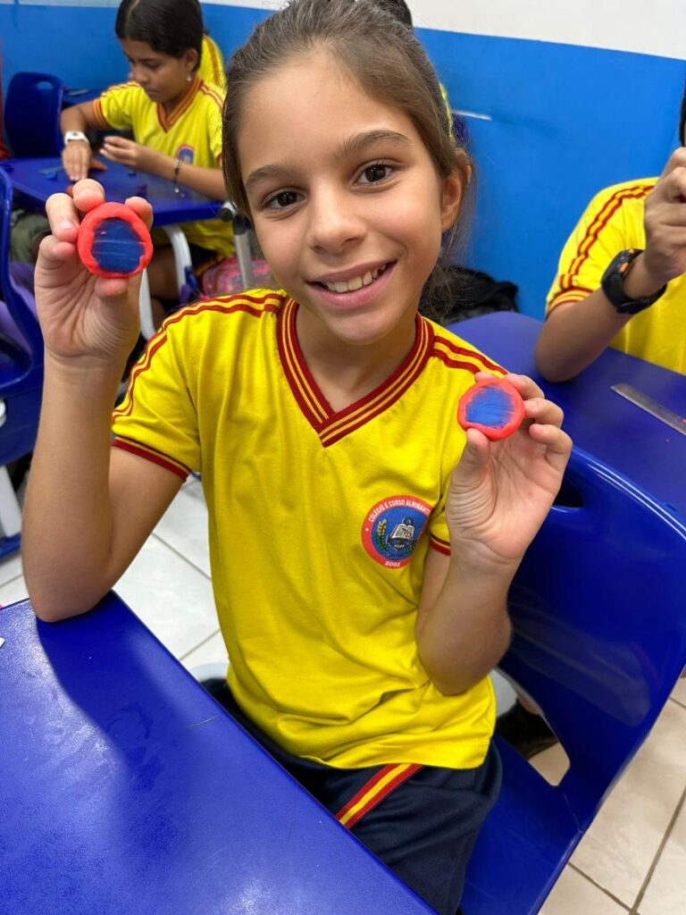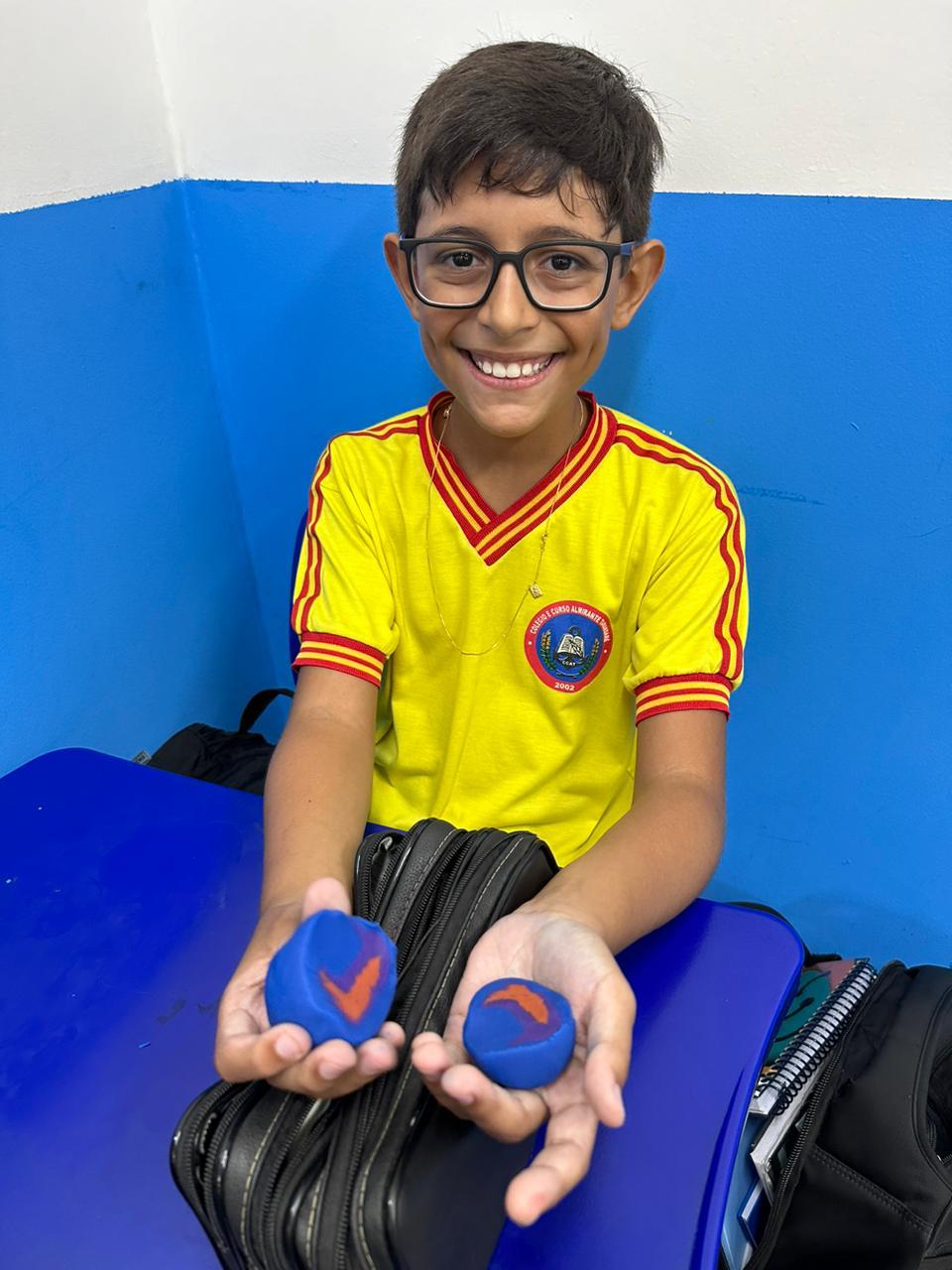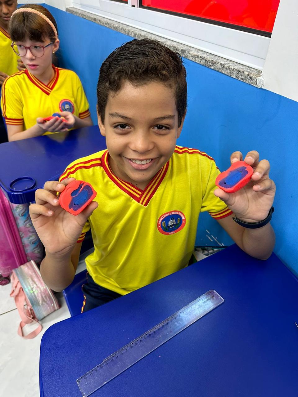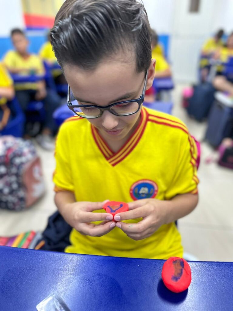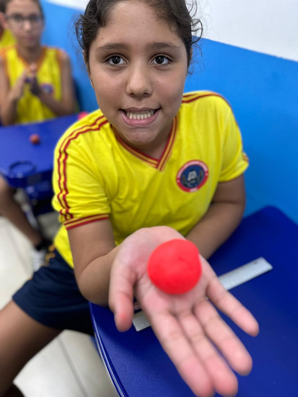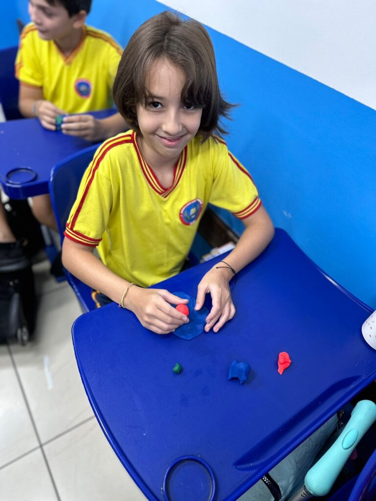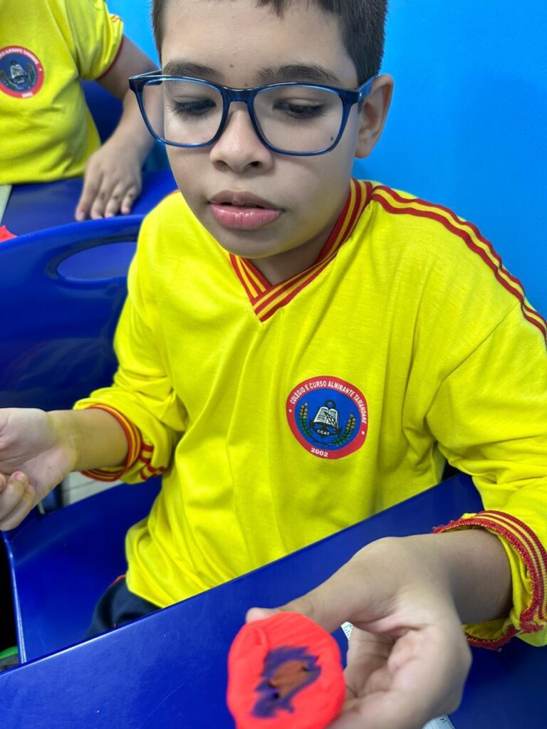 Turminha dos 6º anos montando a estrutura interna do planeta Terra com massinha na aula de Ciências com a professora Yasminne!