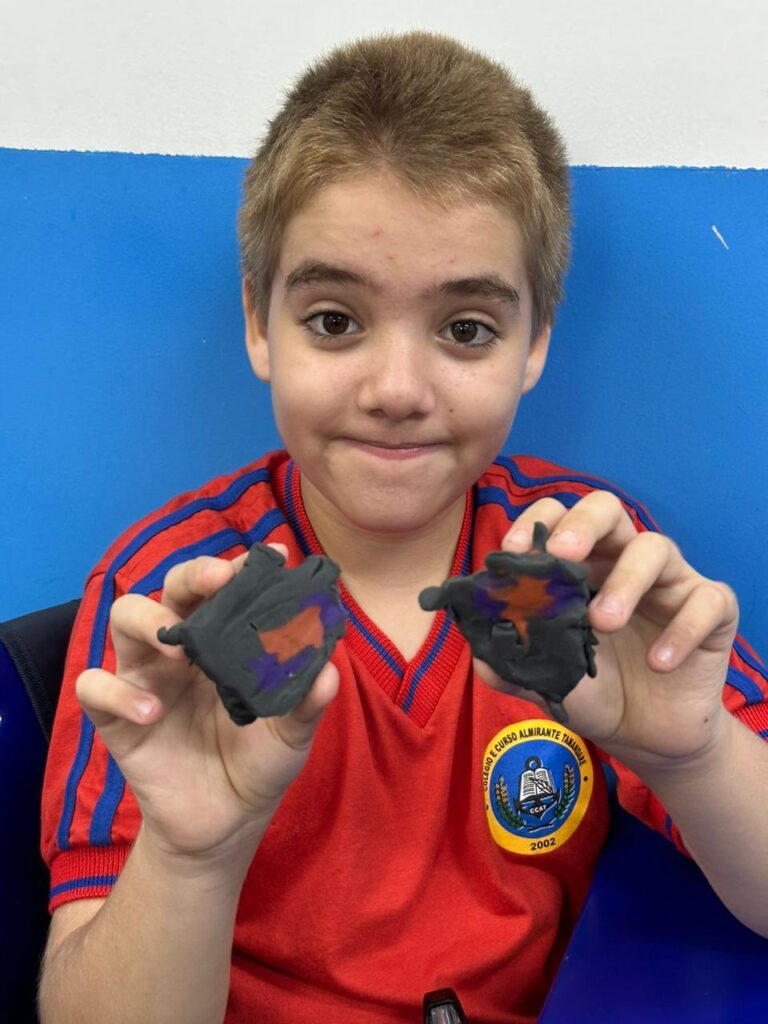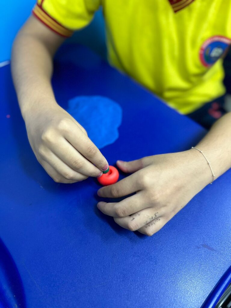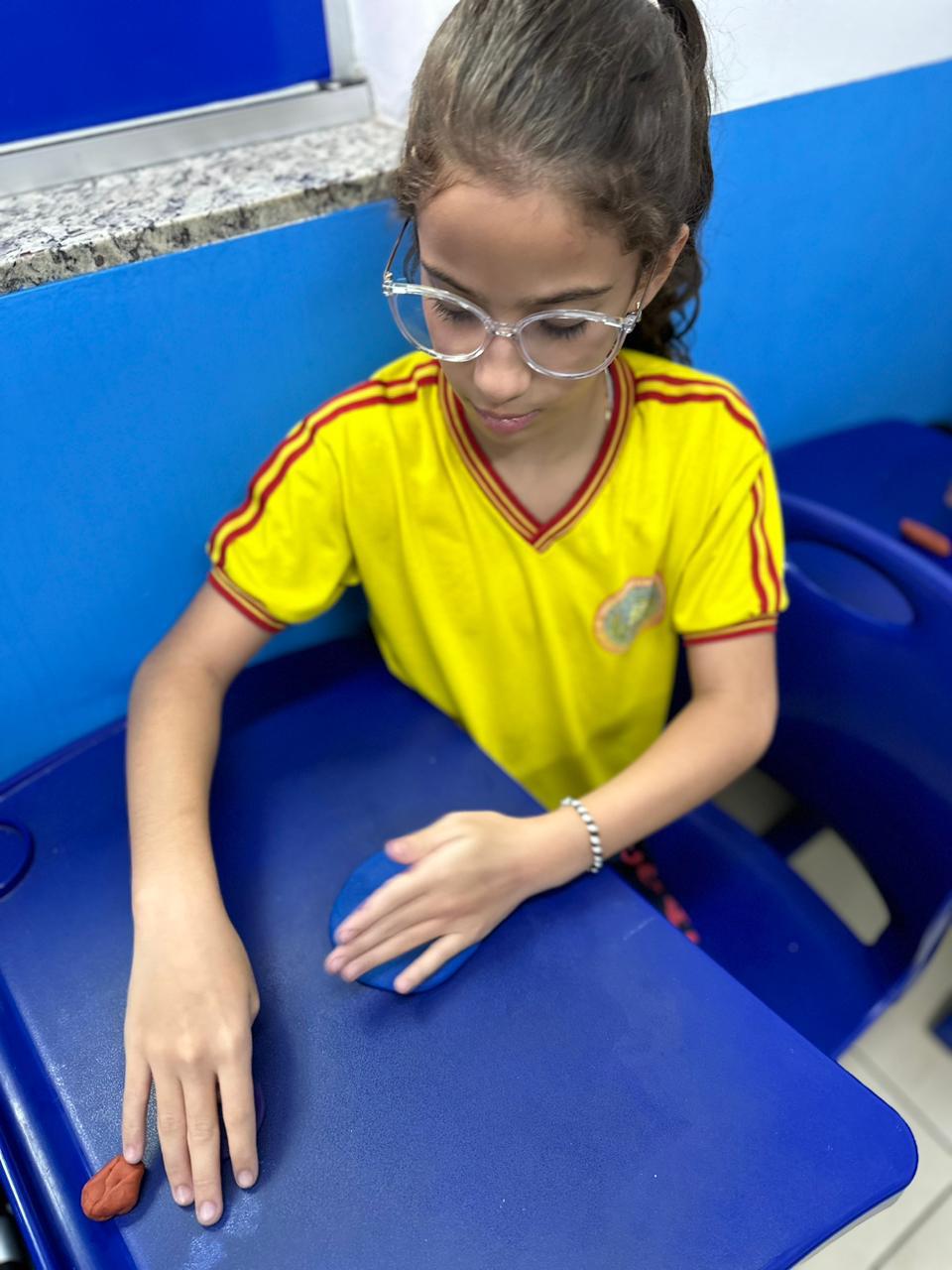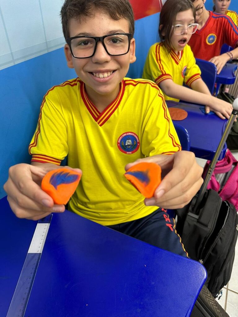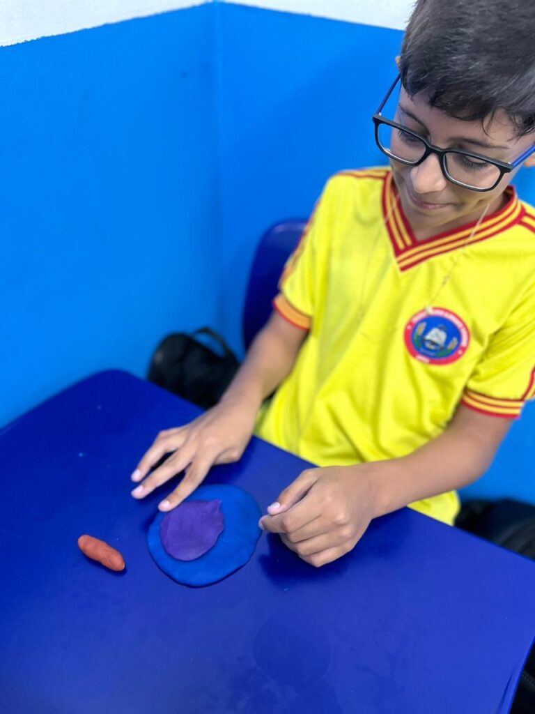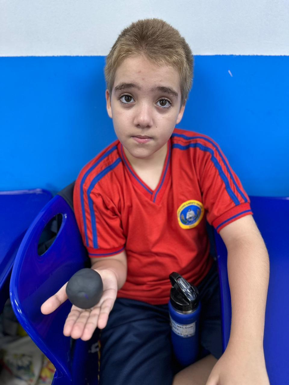 Turminha dos 6º anos montando a estrutura interna do planeta Terra com massinha na aula de Ciências com a professora Yasminne!