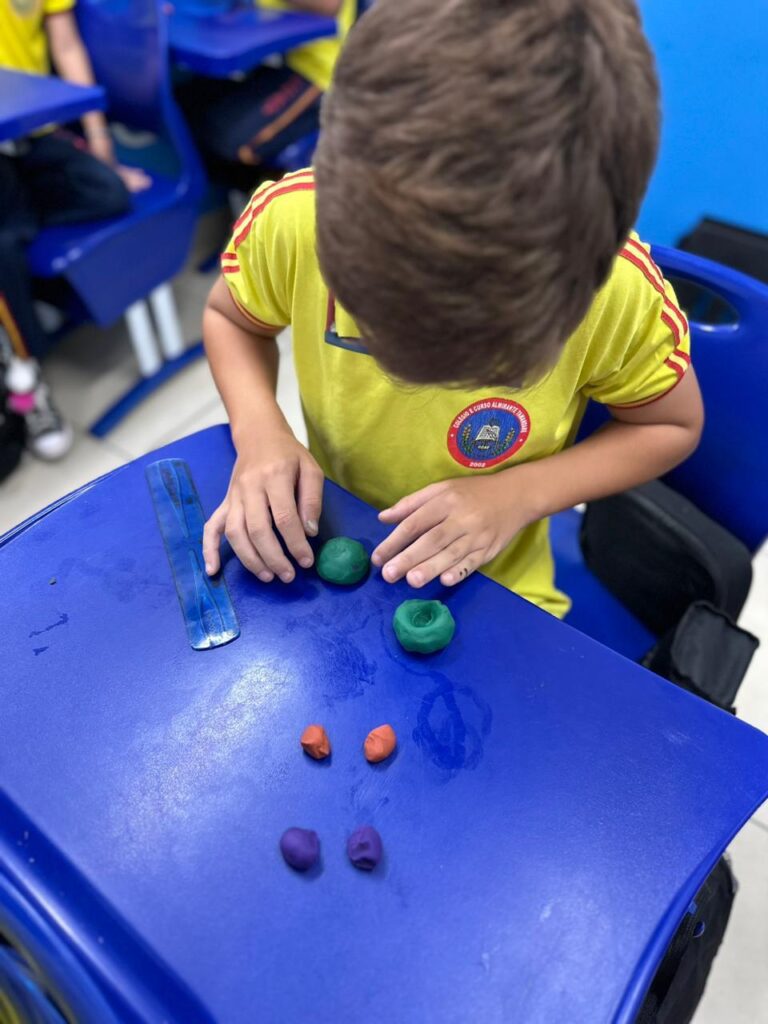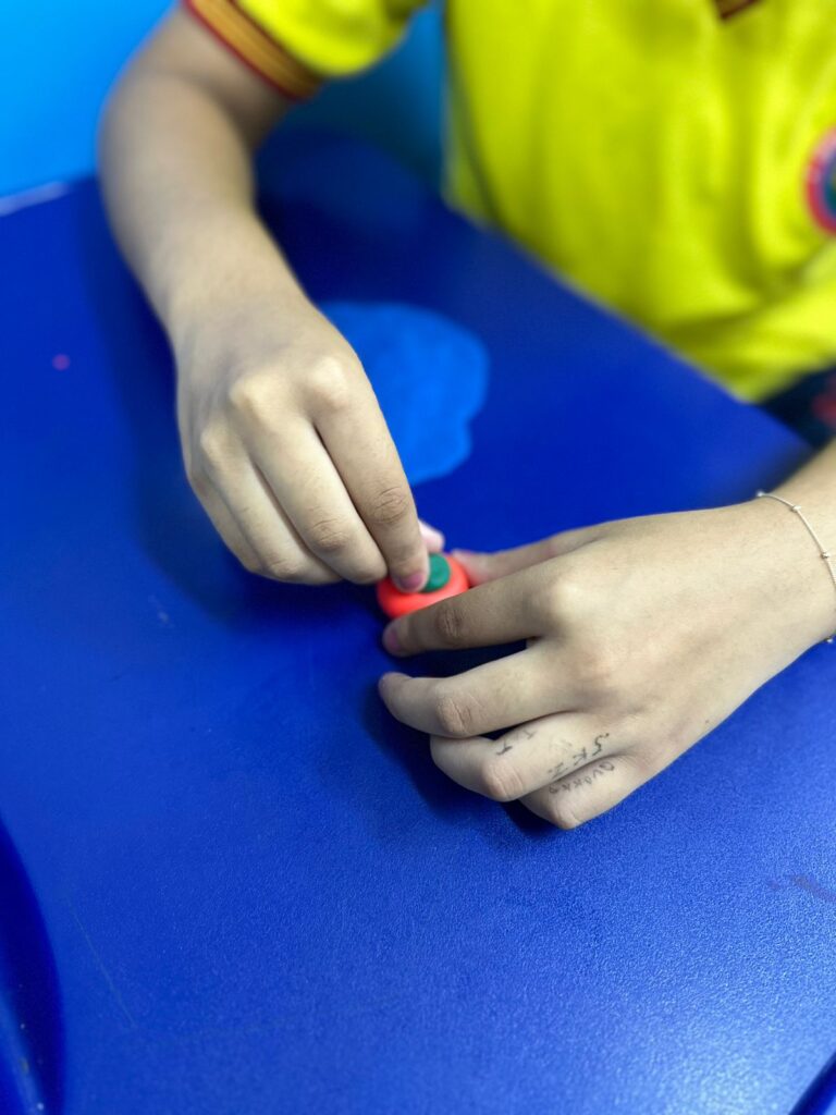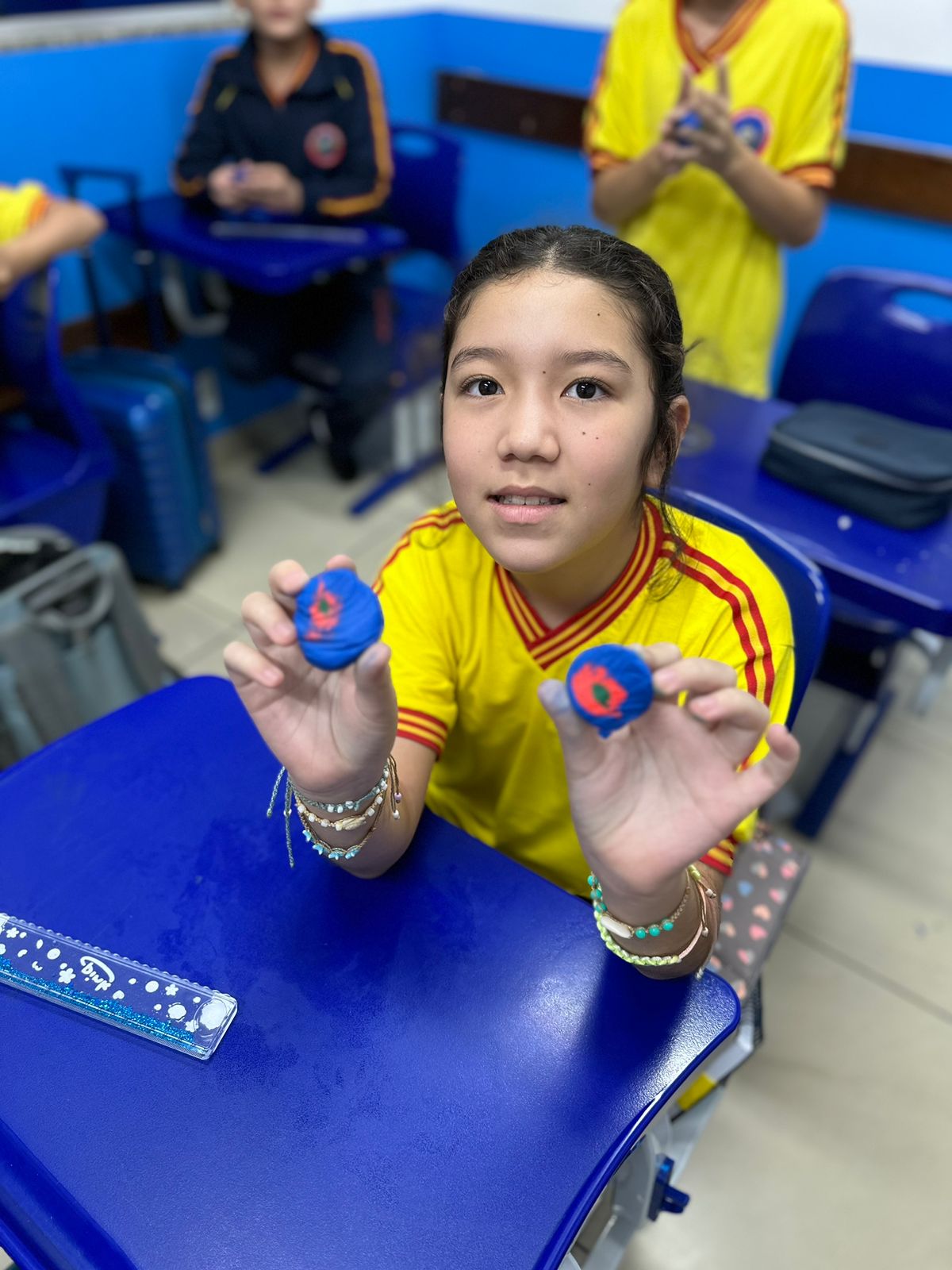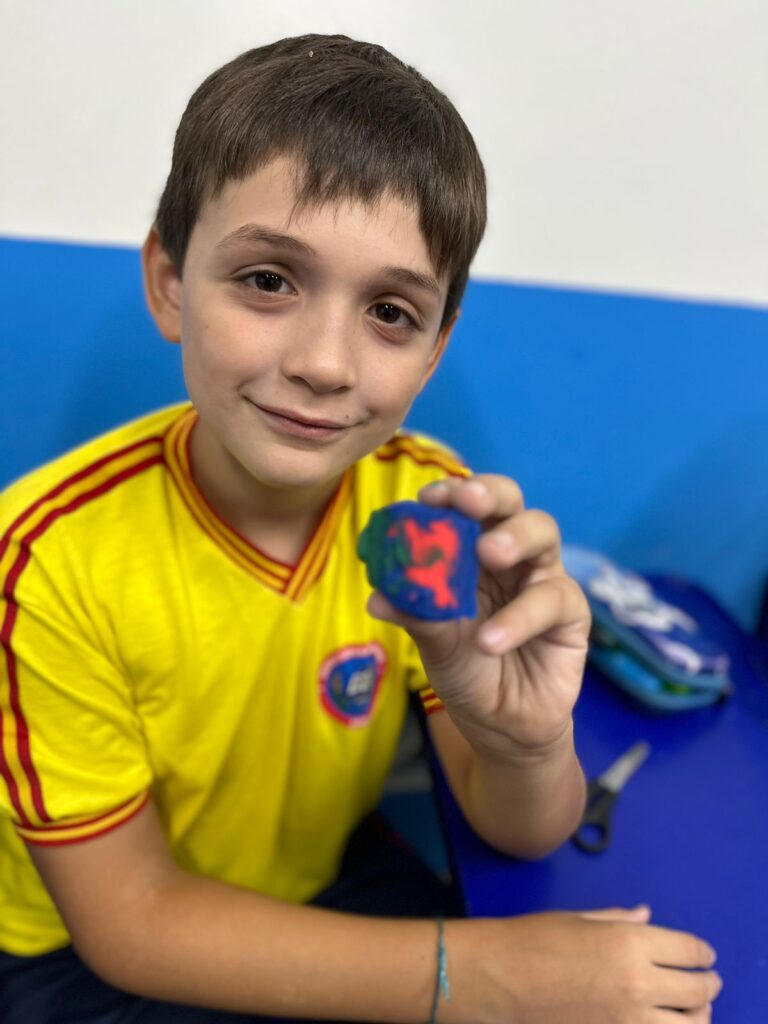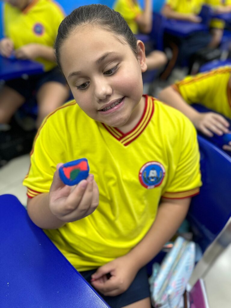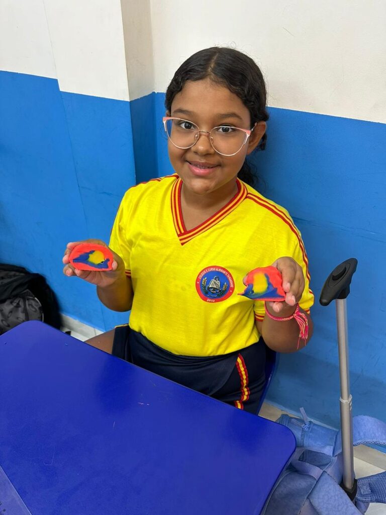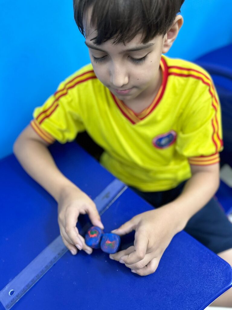 Turminha dos 6º anos montando a estrutura interna do planeta Terra com massinha na aula de Ciências com a professora Yasminne!