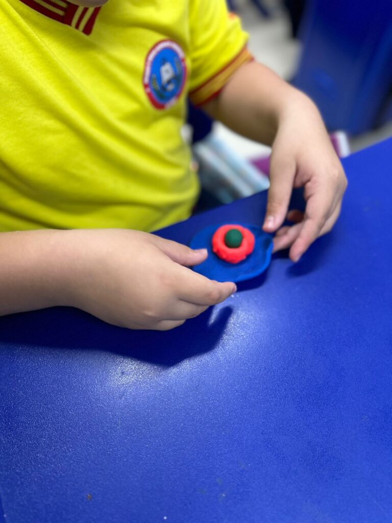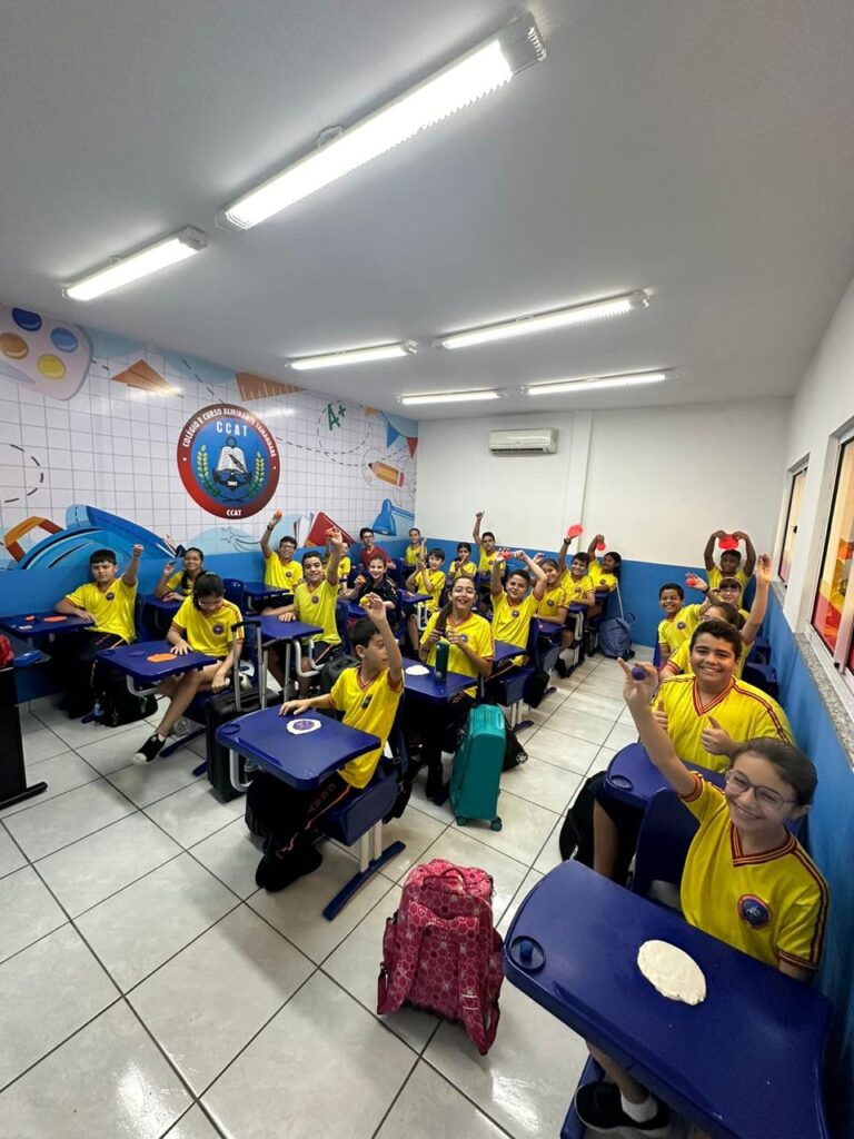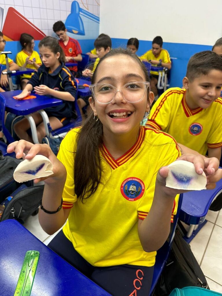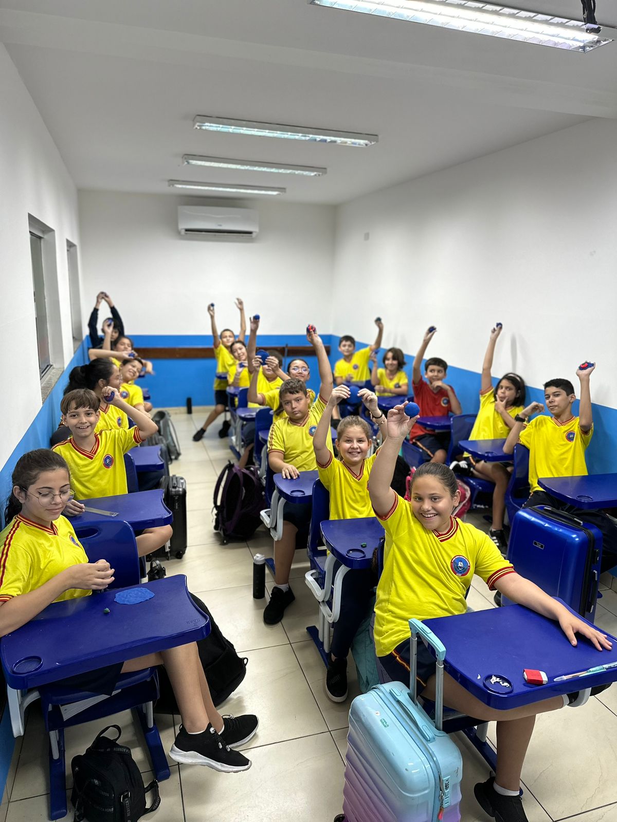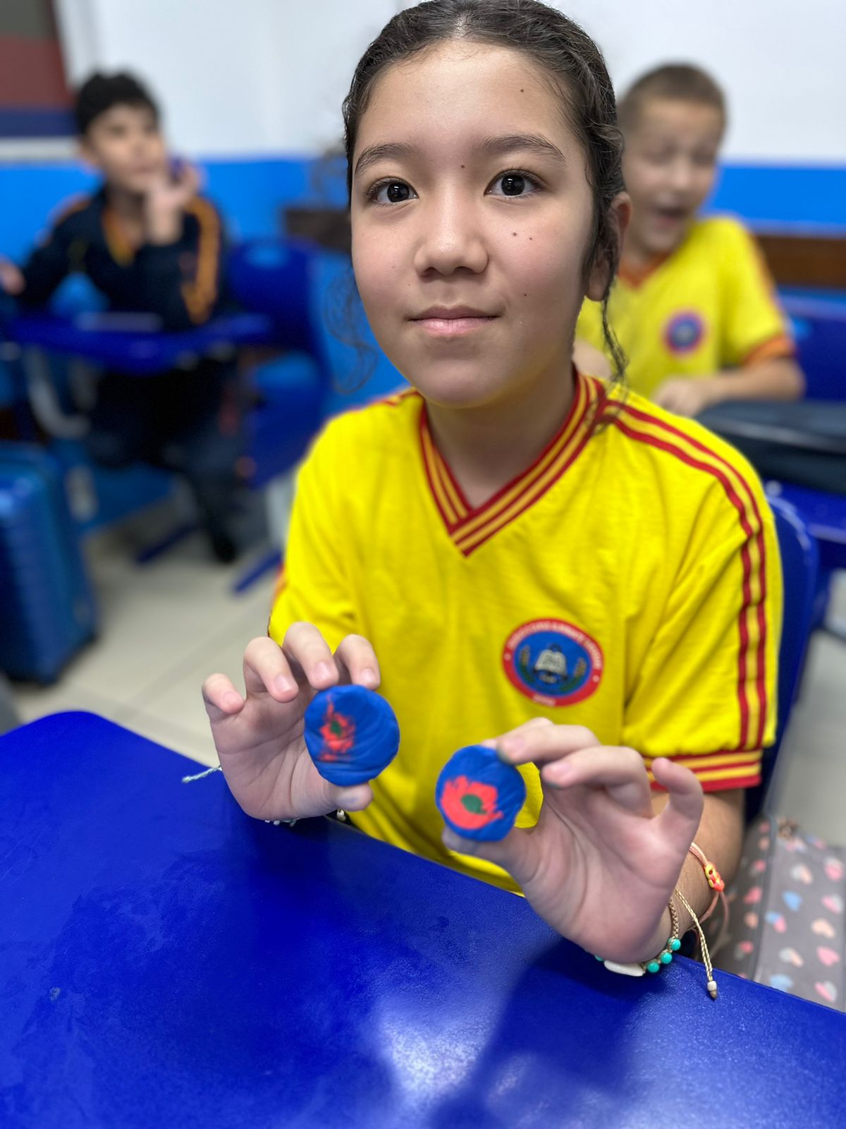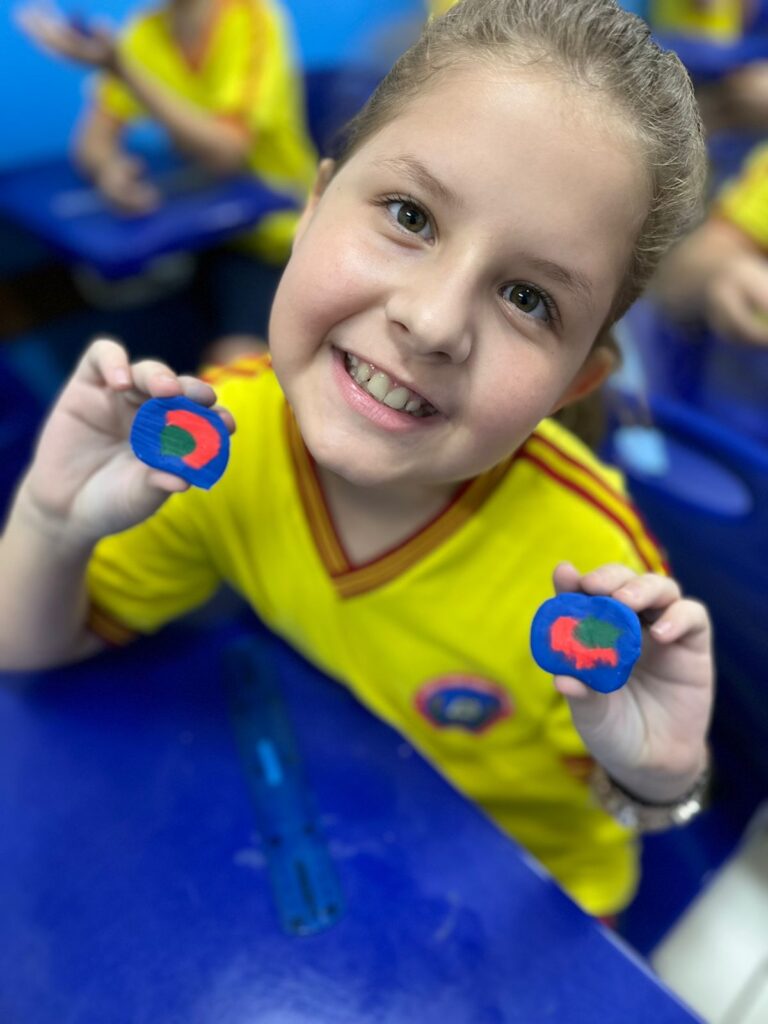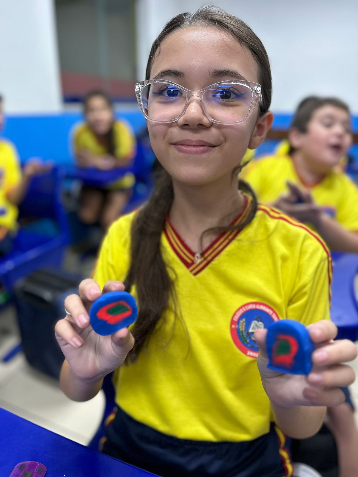Turminha dos 6º anos montando a estrutura interna do planeta Terra com massinha na aula de Ciências com a professora Yasminne!