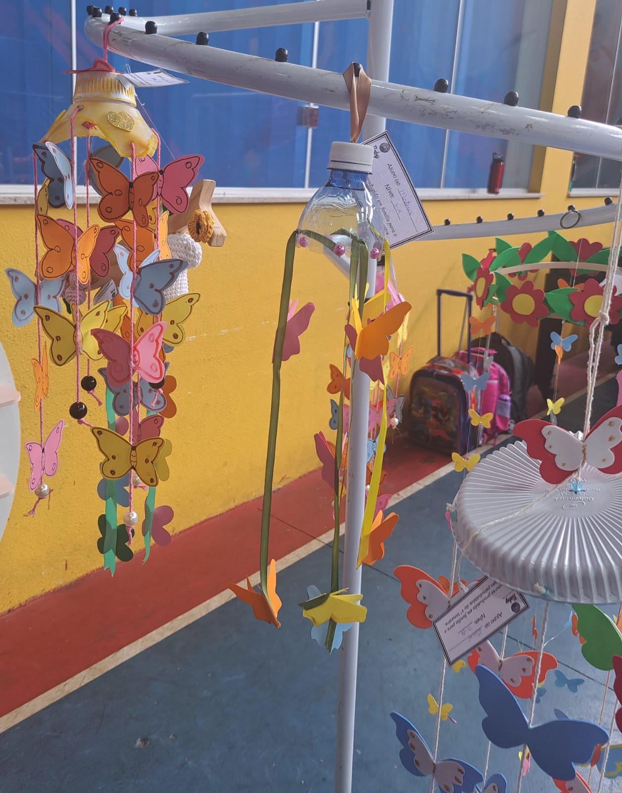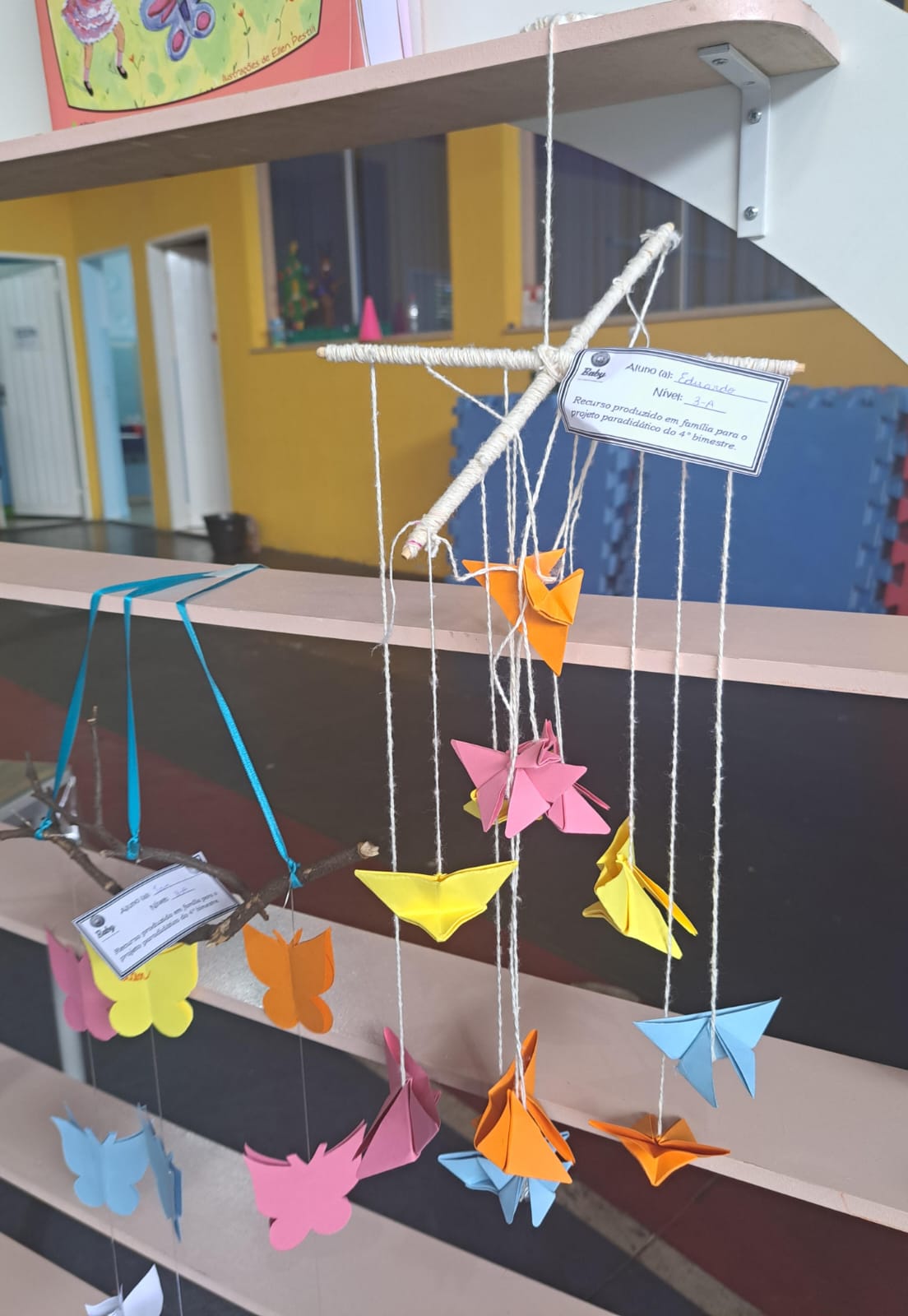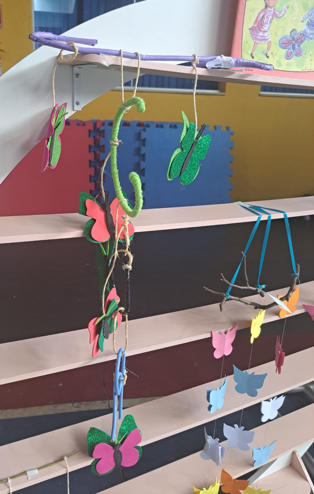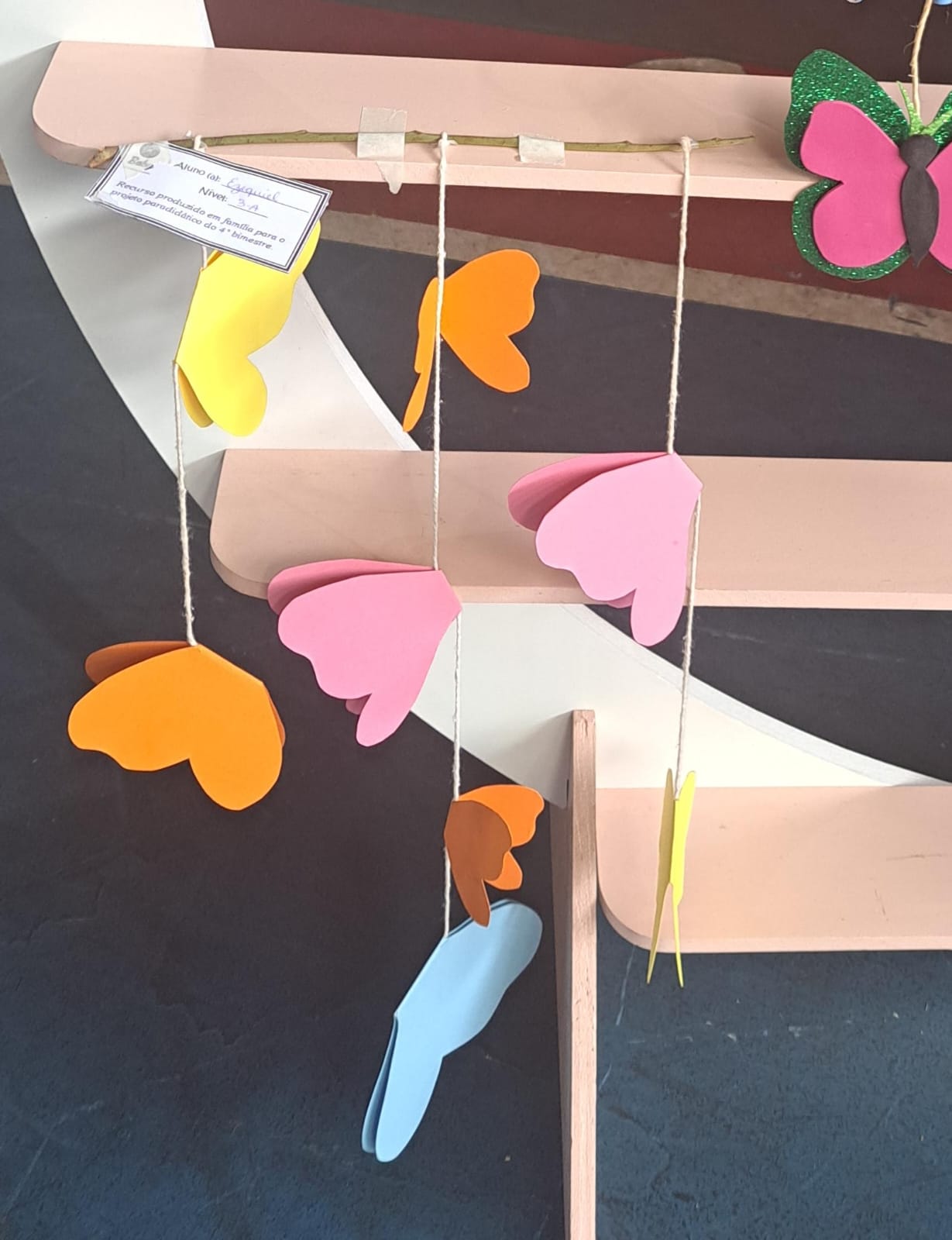 A proposta em família, realizada com muito capricho, foi a construção de um mobile de borboletas.