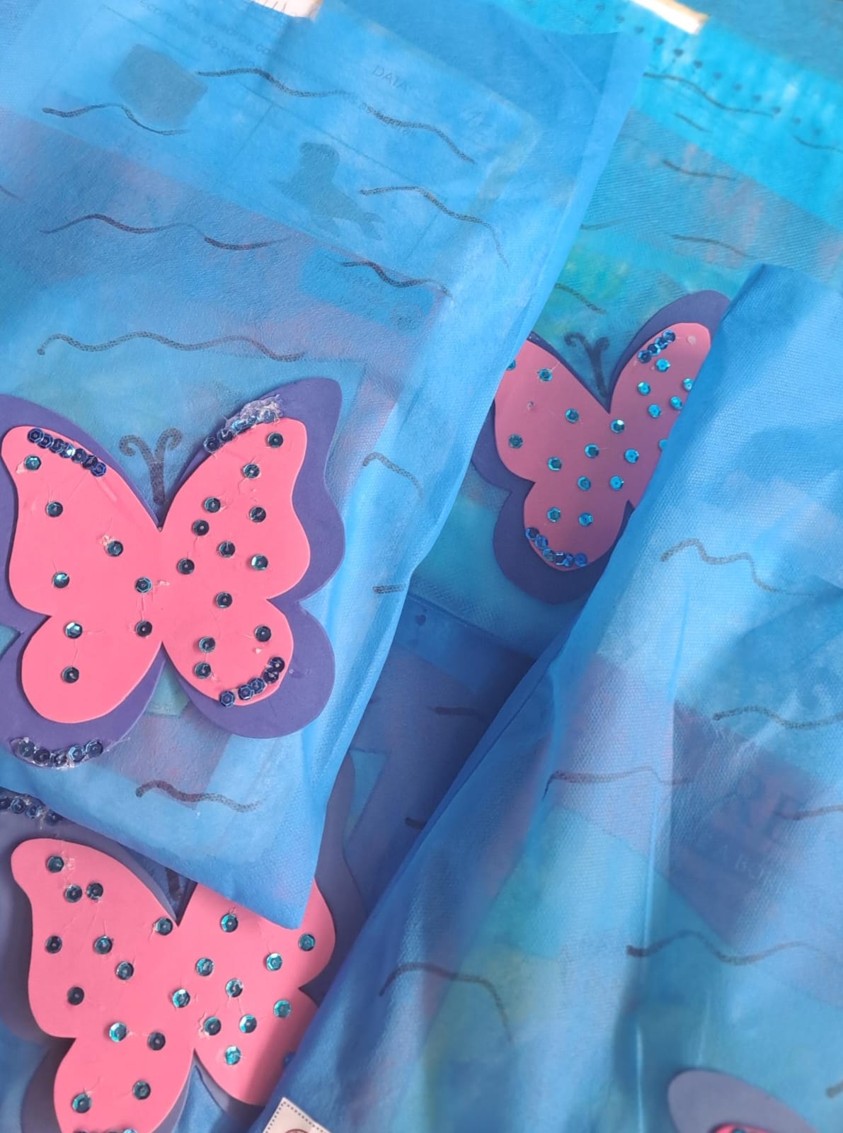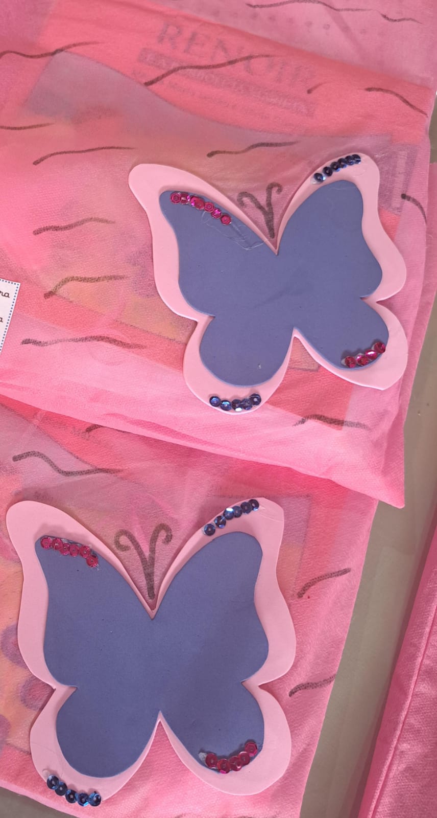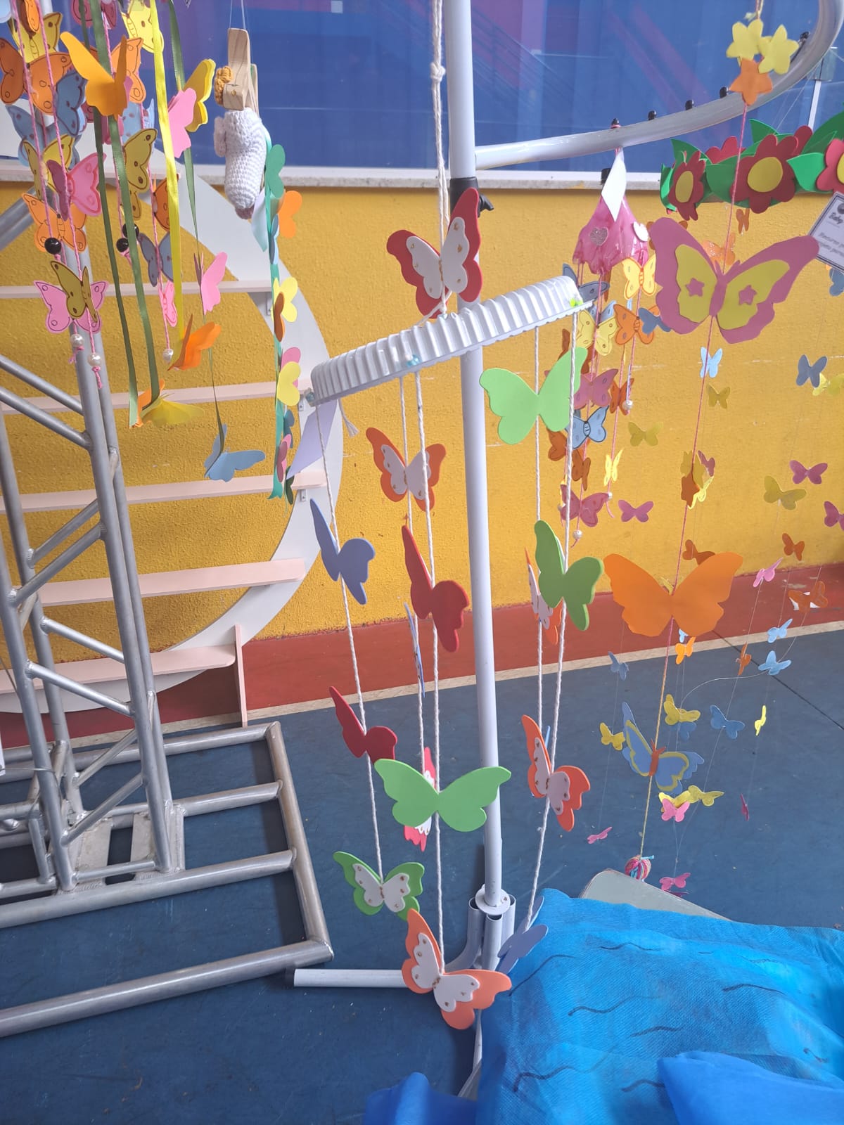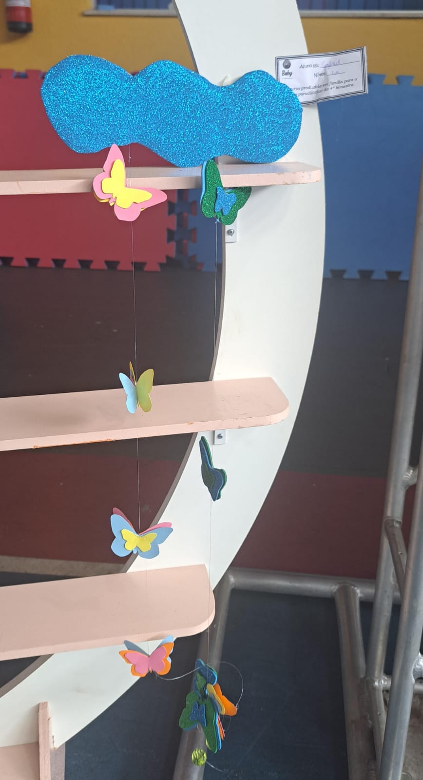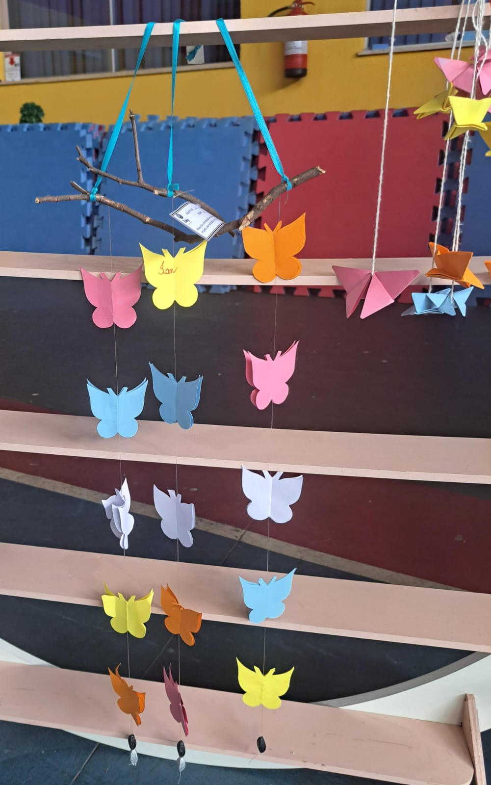 A proposta em família, realizada com muito capricho, foi a construção de um mobile de borboletas.